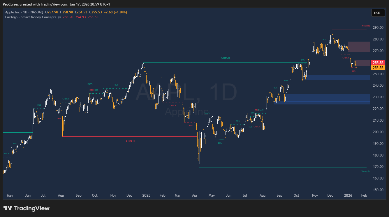 - Estructura Mayor (HTF – Higher Time Frame): (Diario / 4 Horas). Nos dice la dirección general. Aquí buscamos los BOS principales.
